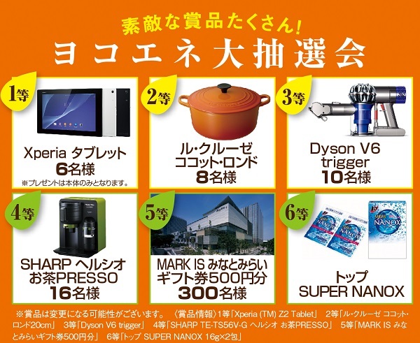 ガスの検針時に配布されるチラシについている抽選券をお持ちいただければ、素敵な商品が抽選で当たる「ヨコエネ大抽選会」に参加できます!リフォームフェアのチラシは大事に取っておいてくださいね♪
