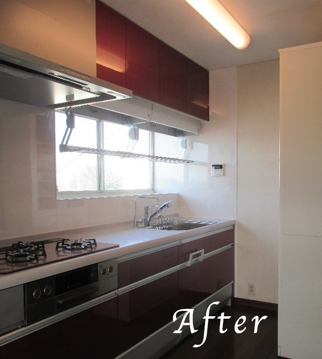 ものを取り出す時の動作も楽になりました。(3)お手入れに手間のかかる壁タイルをキッチンパネルに変更。見た目も明るく、お掃除しやすいキッチンになりました。