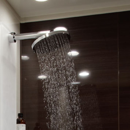 一気に洗い流せるオーバーヘッドシャワー、面で温めるボディシャワー、冷えやすい足元を温めるフットシャワーの3つの機能を持つ万能シャワー。