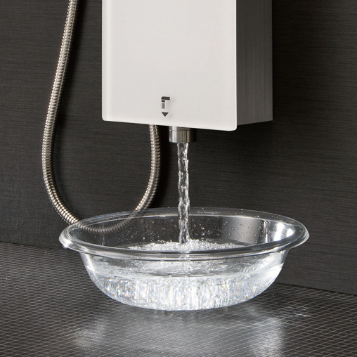 手をかざすだけで吐水&止水ができる、タッチレスの賢い水栓。黒いお皿や透明のガラスコップなど、今まで感知しずらかった物にも高性能センサーがしっかり反応します。