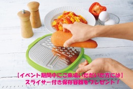 (1)【ご来場特典】ご来場者全員に「スライサー付き保存容器」をプレゼント!