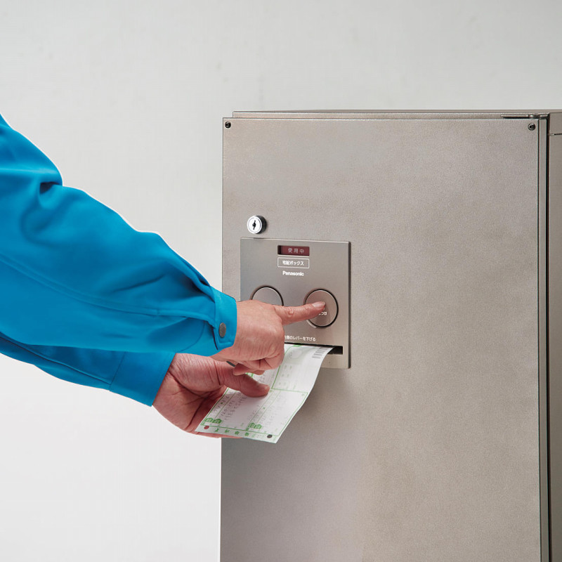 “COMBO”は電気を使用しない宅配ボックス。荷物の預け入れと取り出しは簡単。パナソニック独自の押印機構により、電気を使わずに伝票への押印もできるスグレ物です。