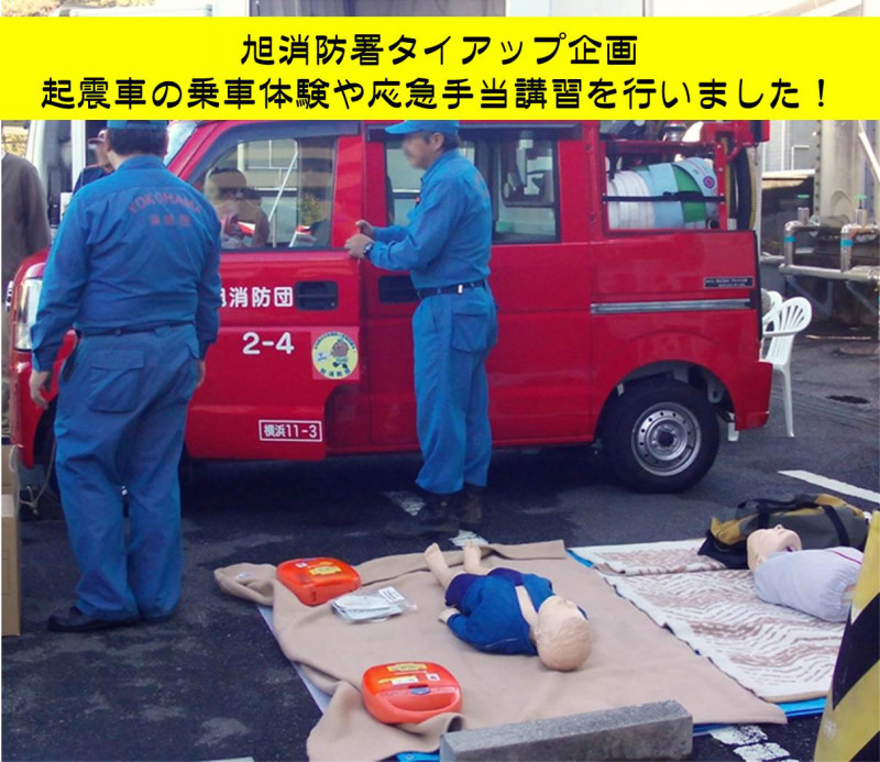 恒例となっている起震車の乗車体験など、旭消防署とのタイアップ企画には、今年もたくさんの体験希望者にお集まりいただきました。