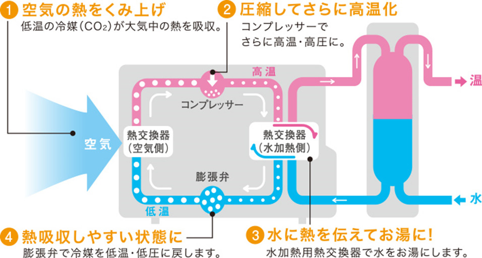 (出典:エコキュートとは? | はじめてのエコキュート | 三菱 エコキュート | 三菱電機 (mitsubishielectric.co.jp))