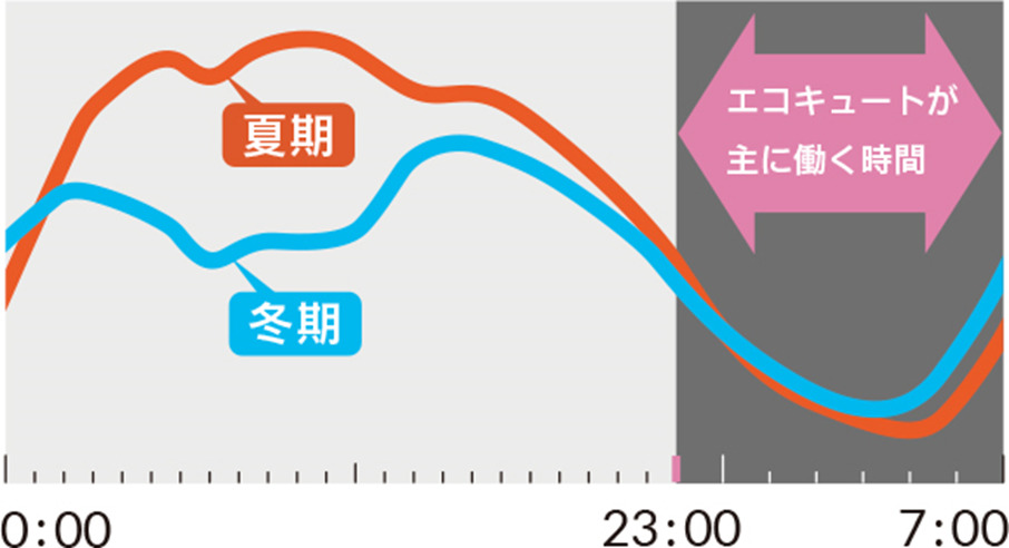 エコキュートは夜間に翌日1日分のお湯を沸かします。そのため、夜間の電気代が割安になるプラン※1を利用することで電気代を抑えられる可能性があります。