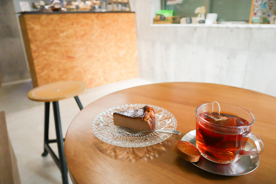 今回いただいたのは、季節限定の「スパイスチャイのチーズケーキ」です。しっとりした口当たりにびっくりしていると、スパイシーな香りがふんわりと鼻に抜けます。添えられた「ガレットブルトンヌ」という厚焼きクッキーは、サクサク・ほろほろの食感。筆者が以前食べた米粉のクッキーは固めで、「粉の特性なのかな」と思っていましたが、そのイメージはきれいに覆(くつがえ)されました。