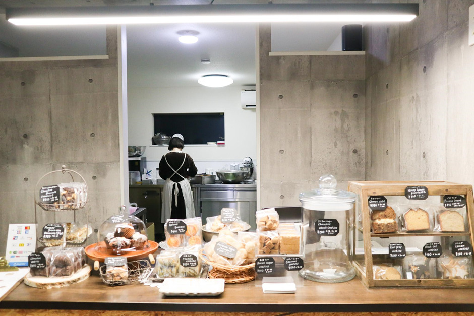 東急東横線東白楽駅から、県道12号線に沿って歩くこと3分。シックな黒い外観と、スタイリッシュな内装が印象的な焼き菓子店があります。「米粉の研究室(ラボ)」をうたうそのお店は、米粉・玄米粉のお菓子や食品を扱う、グルテンフリー専門店「星製粉所 BAKE LAB(以下、ベイクラボ)」。店内奥のカウンターには、クッキー・マフィン・ブラウニーなど、米粉で作られた焼き菓子が所狭しと並んでいます。
