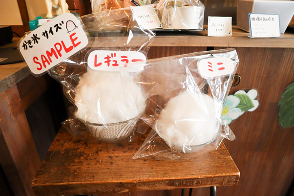 かき氷はレギュラーとミニの2サイズから選べます。かき氷を食べ慣れている方はレギュラーサイズ、他のメニューと食べ比べしたい方には、ミニサイズがおすすめです。鈴木さんの心遣いで、かき氷には温かい麦茶がついてきます。体を冷やしすぎないので、最後までおいしく食べ切れるのかもしれません。