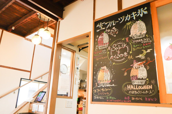 7月から9月の夏場は、お店はかき氷専門店に早変わり。あまりの人気に、ピーク時には2〜3時間待ちになることもあるそうです。メニューは「生フルーツ氷」「漬込フルーツ氷」「定番氷」の3種類。天然水で作られた氷を使用し、ふわふわの食感が出せるよう、徹底した温度管理を行っています。