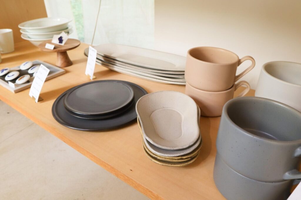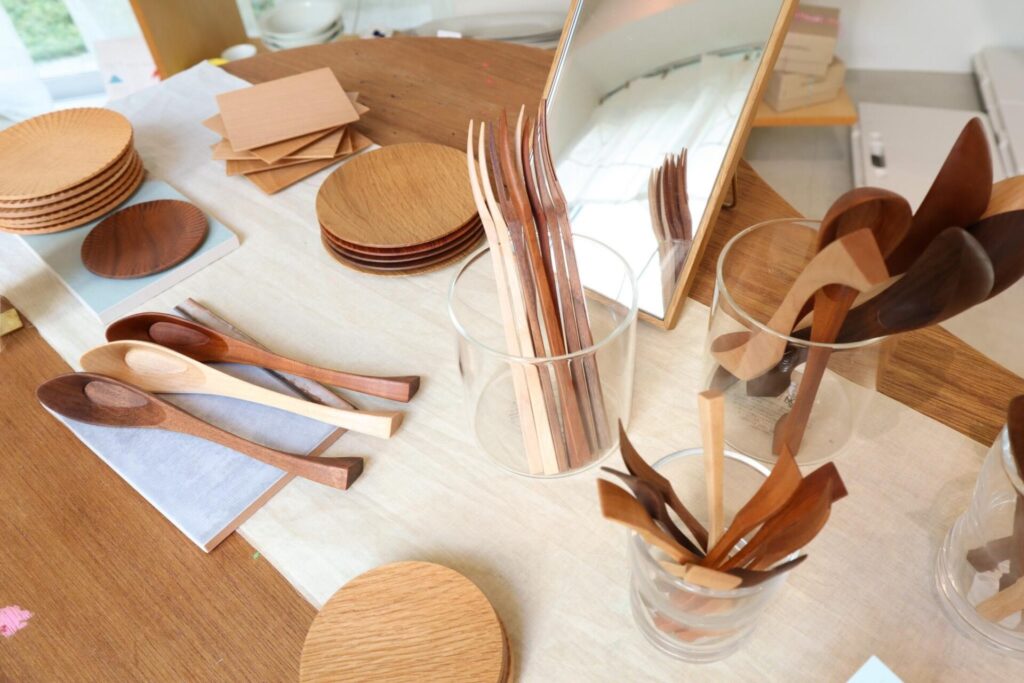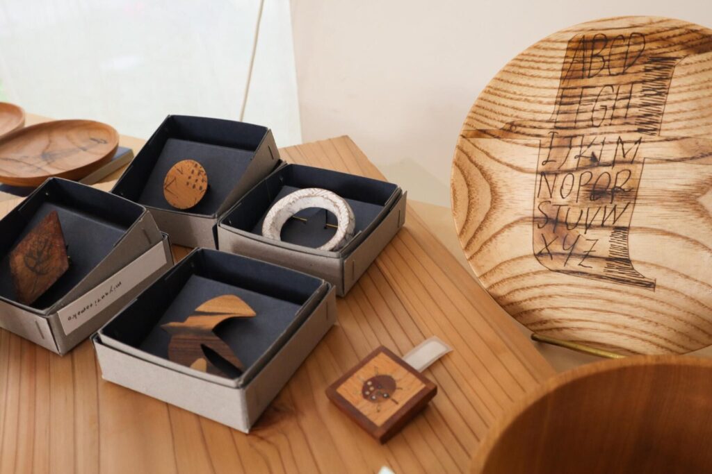 店内には、暮らしに馴染む木製食器やナチュラルな色彩の陶器、彩りを添えるアクセサリーなど、作家さんの手仕事を感じさせるアイテムが所狭しと並べられています。