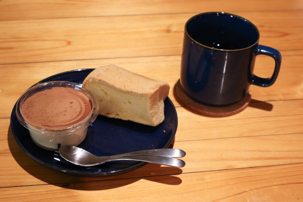 この日は、人気メニューの「米粉シフォンケーキ」と「米粉甘酒ティラミス」、そしてハーブティーの「スイートモーニング」をいただきました。