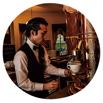 おもてなししてくれるのは、きちんと仕立てられた白いシャツに漆黒のベストを着たスタッフ。一貫した世界観に、まるでパリのカフェにいるような錯覚を起こしてしまいそうです。