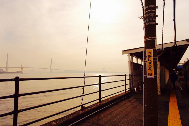 東芝の私有地内にあるため、改札の外で一般開放されているのは隣接の「海芝公園」まで。公園からの景色はもちろん、ホームから見る海もとってもキレイなんだコロ。