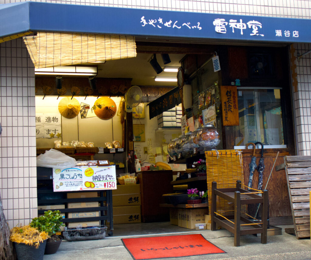 「雷神堂」は関東を中心に展開する、おせんべいの専門店です。瀬谷店の創業は1968年(昭和43年)と古く、優しい笑顔の女将さんはせんべい屋を始めてからこの道一筋だそう。