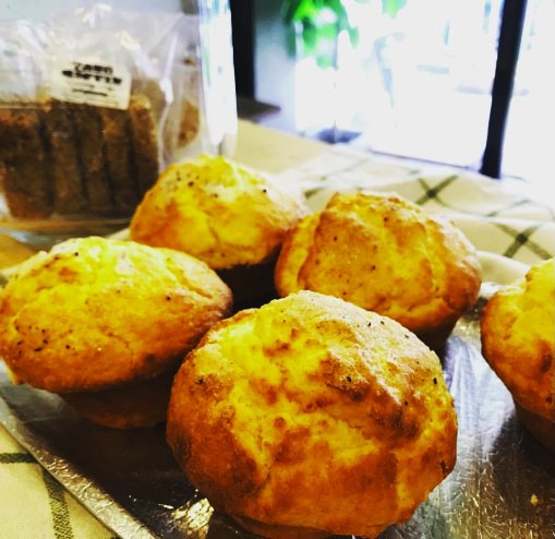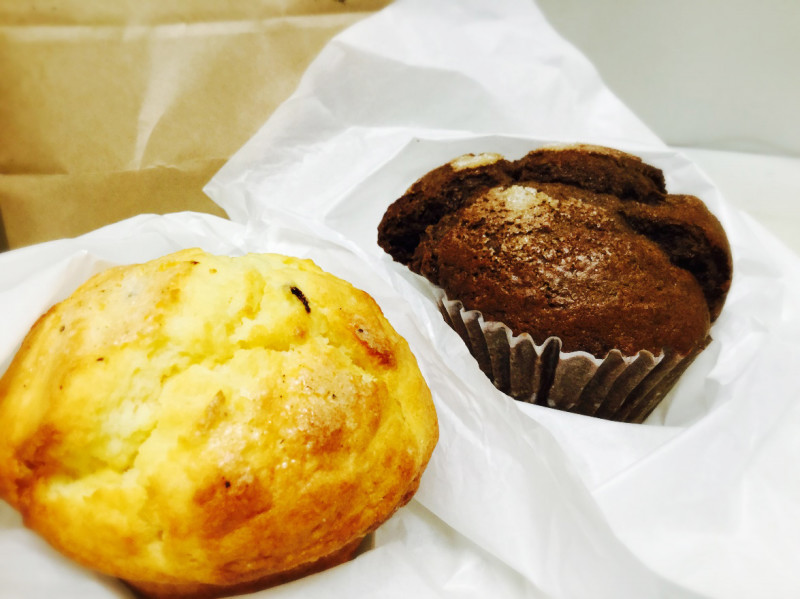 マフィンはデザート用からお食事向きの甘くないものまでさまざまでお持ち帰りもできます。