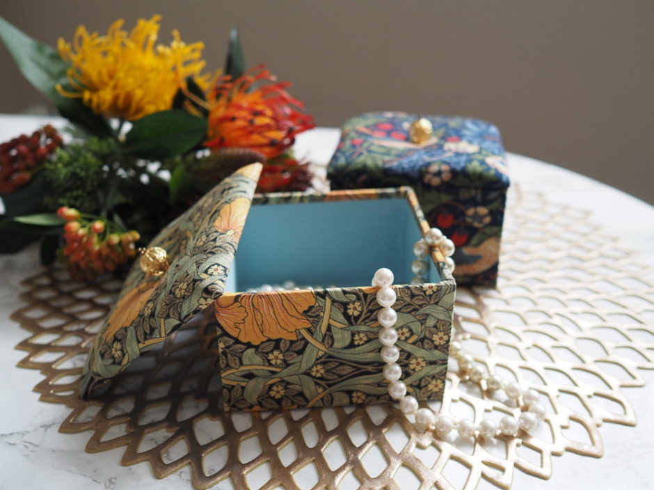 厚紙に布や紙を貼って小物を作る「クリエナージュ」レッスンでは、おしゃれな収納ボックスなどを作ることも可能。「鎌倉彫風ご朱印帳」を作るレッスンは、神奈川県のふるさと納税返礼品に採用されています。