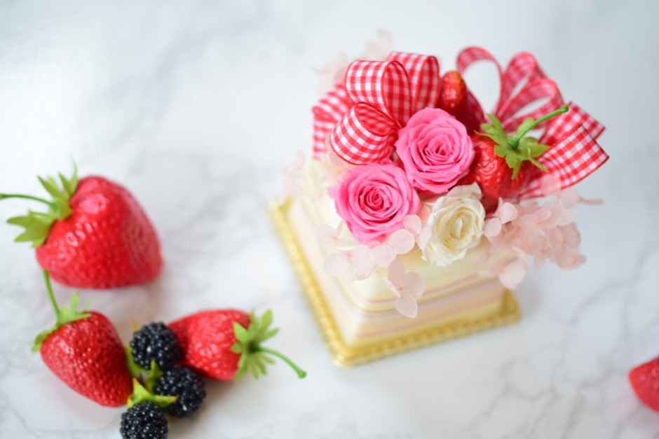 生花に特殊な加工を施した「プリザーブドフラワー」レッスンでは、フラワーアレンジはもちろん、フラワーケーキなどの雑貨が制作できます。