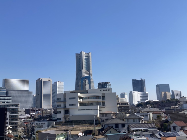 本社の屋上から撮った写真です!横浜みなとみらいのシンボルであるランドマークタワーが綺麗に見えます♪