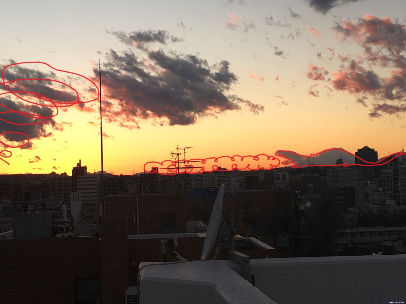 なんて妄想してた僕。正体は夕焼けの富士山と雲だったコロ。