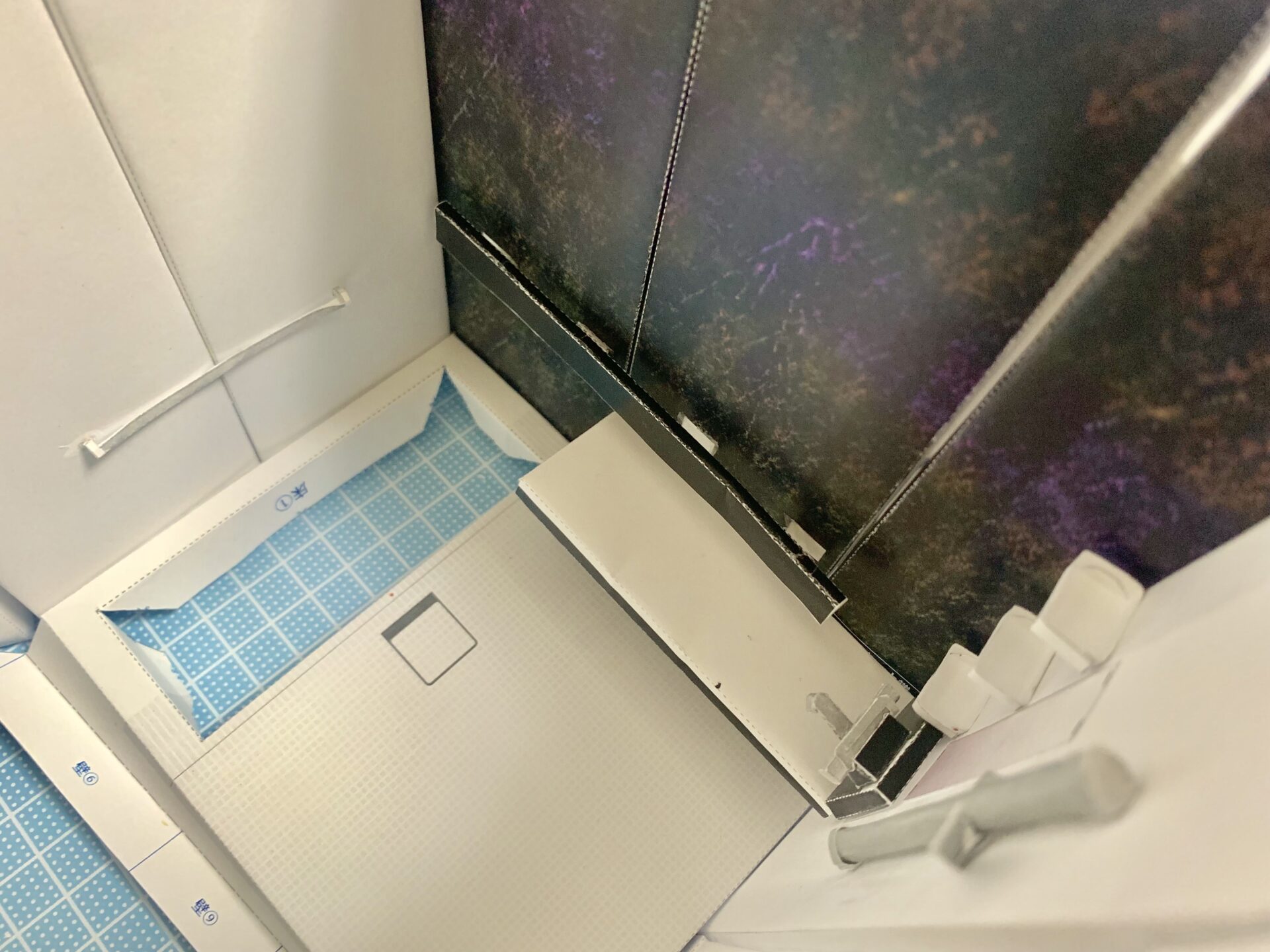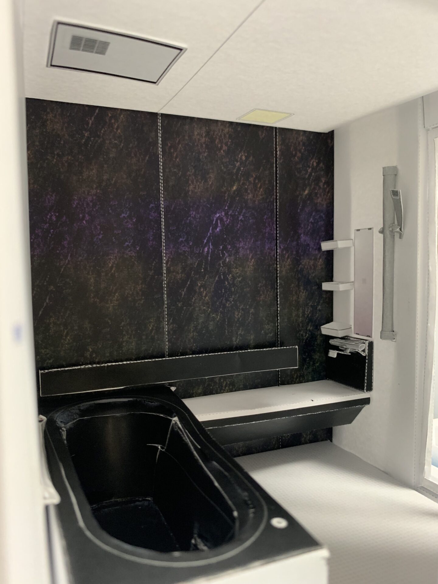 特に難しかったのは棚や水栓の部分です。なんとシャワーは動かせるんですよ!