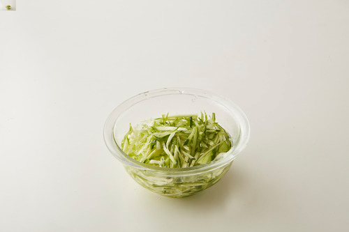きゅうりとレタスを氷水に10分ほどつけたら、しっかりと水気をきる。