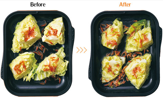 今日は人気のコンロ「ノーリツ製プログレシリーズ」を使った体にやさしいレシピ、「キャベツと桜海老の蒸し煮」をご紹介します。2