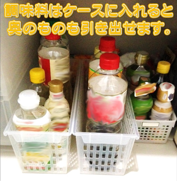 棚の奥にしまった調味料はうっかり忘れがち。「新しいのを買ってきちゃった!」なんてこと、ないコロ?調味料は長方形のケースにまとめて入れておけば、奥の方にしまってもケースごと引き出せるから便利コロ!大きさ別・賞味期限別などに分けてしまっておけば、さらに見やすいコロね!