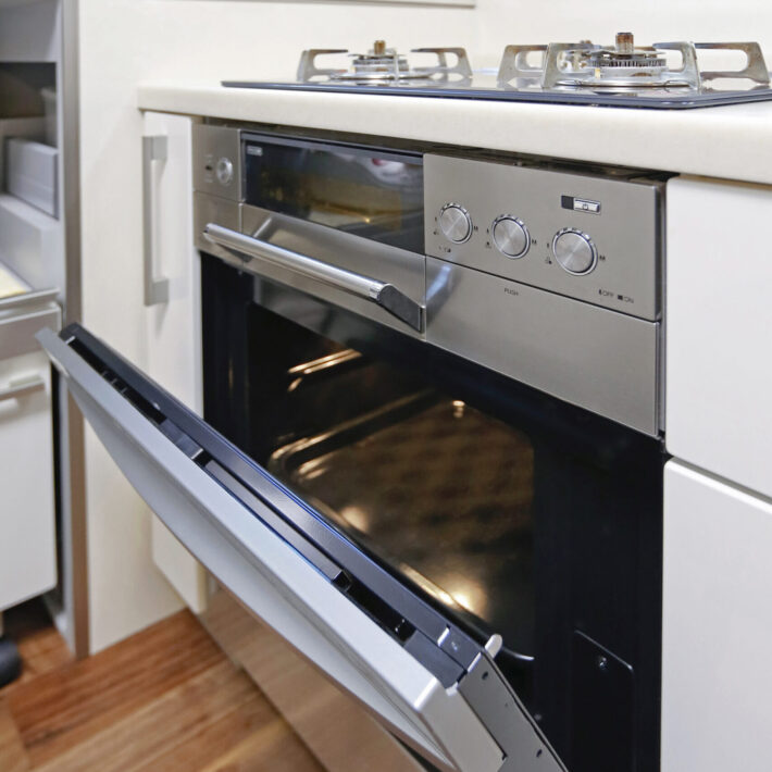 無駄な動線が省略されて、流しからコンロへの移動もスムーズに。