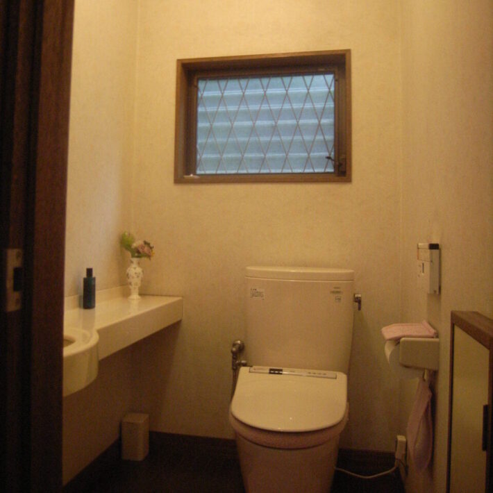節水タイプでお手入れもラクなタンクレストイレ。これによりお掃除が簡単で、スッキリとした空間になりました。