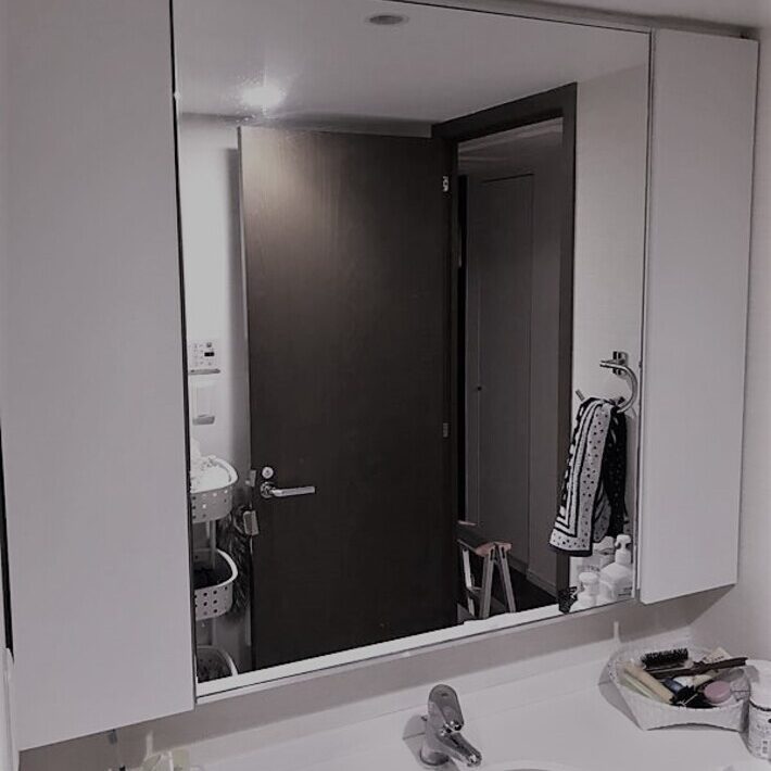 洗面台と鏡のお掃除がしづらい。