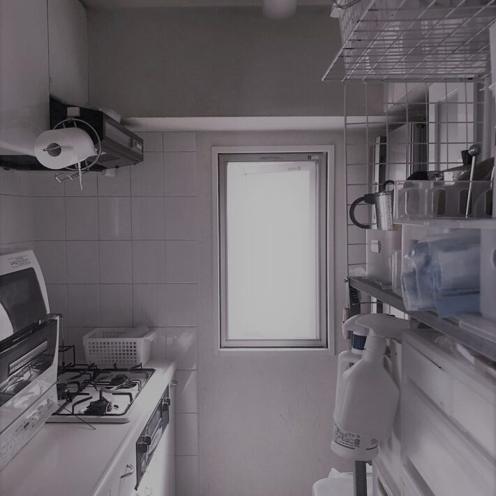 壁を取り払うだけでなくキッチンの向きを変えて、背面を大容量の収納にしました。