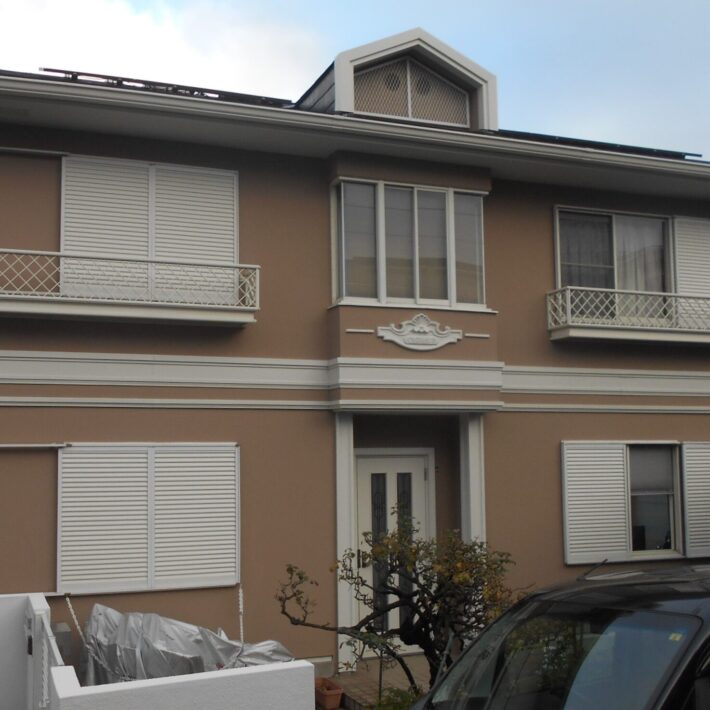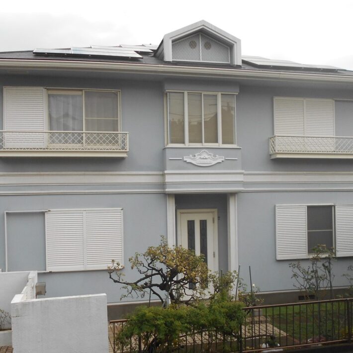 家族が安心して暮らせる住まいに外壁にチョーキング現象、色あせ、汚れ、苔・藻の付着が見られました。屋根のひび割れなども見られたので、防水塗装をご提案しました。