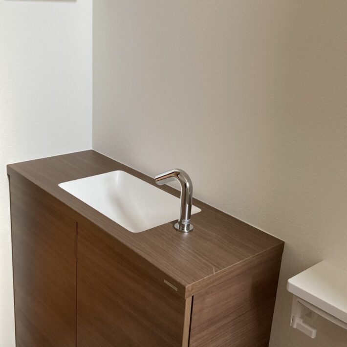 色や器具の取付位置については、見た目を重視し、お客さまと打合せを重ねて決定しました。機能性も見た目もこだわった、快適なトイレ空間が完成しました。