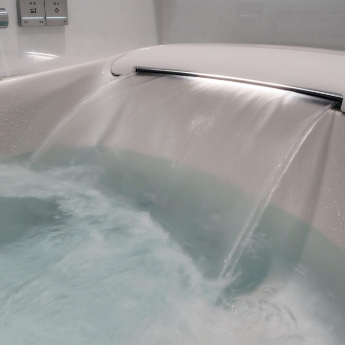 「楽湯」で肩からお湯を浴びる癒しの時間を実現。さらに、「調光調色システム」で時間帯や気分に合わせた照明演出も可能に。毎日の入浴が、特別なひとときに変わります。