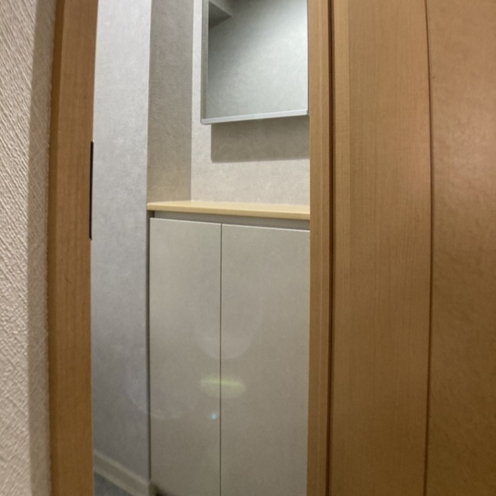 トイレの交換と同時に、手洗い器を使用していないので、何か活用できないかとご相談いただきました。スペースが限られていたため、既製品ではなく造作で収納棚を設置するプランをご提案しました。