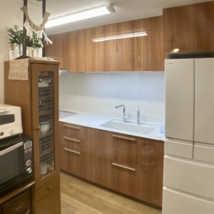 さらに、レンジフードの前幕板も扉と同じデザインにしたことで、キッチン全体に統一感が生まれました。