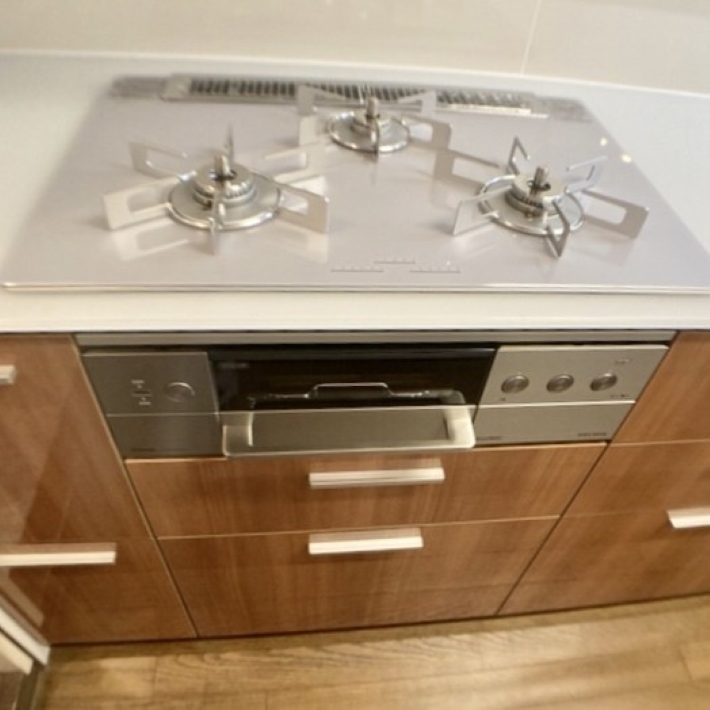 さらに、レンジフードの前幕板も扉と同じデザインにしたことで、キッチン全体に統一感が生まれました。