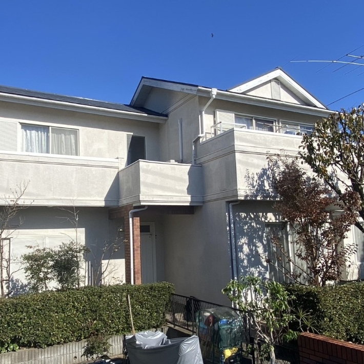 周りと差をつける色選び汚れが気にならず、近隣のお家と被らないような色にしたいというご要望で、明るいグレーをお選びいただきました。