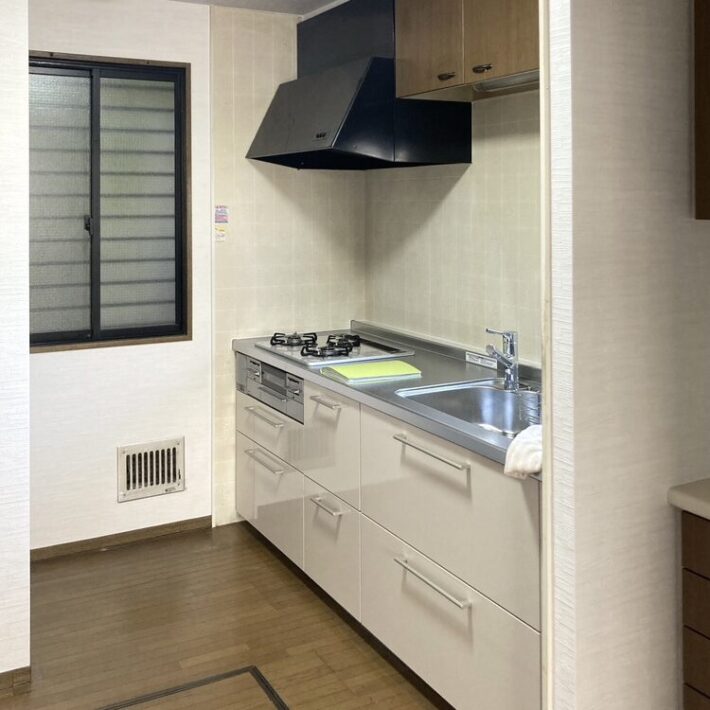 キッチンの使い勝手と美観を向上 キッチンの使い勝手と美観を向上当初はガスコンロの取替のみを予定していましたが、扉の傷みや水栓の老朽化が気になり、キッチンごと新しくすることに。見た目の美しさと機能性の両立を図りました。