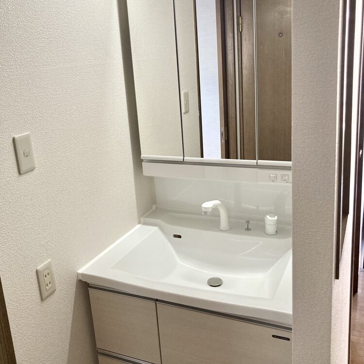 特殊サイズの洗面台にもぴったり 特殊サイズの洗面台にもぴったり幅80cmという特殊サイズの洗面台には、1cm刻みの仕上げに対応したタカラスタンダード製の「リジャスト」を採用しました。