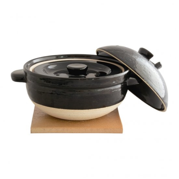 伊賀の粗土 | 伊賀ならではの粗土でできており、土鍋が木のおひつと同じように呼吸します。ごはんがべたつきません。 |
