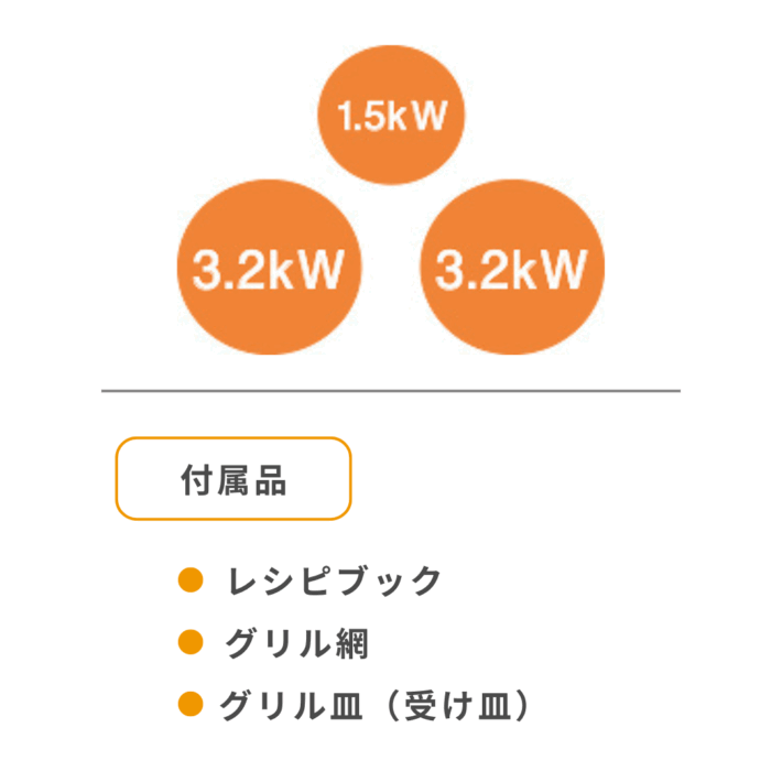 ※グリル部での調理には、レンジ・オーブンで使用できる耐熱性調理皿を使用、もしくはレンジグリルIH専用フライパン(取っ手着脱式)CS-REPANを使用。