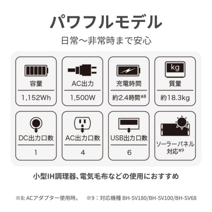 ※3:UPS機能ではありません。給電切り替え時に瞬間的に電力の途切れや電力低下があります。このときの接続機器の動作は接続機器の仕様によって異なります。
