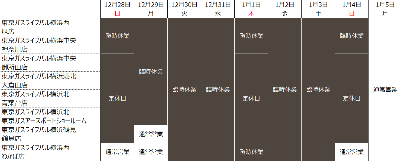 2025.12.04 その他 ショールーム 年末年始休業のお知らせ シェア 平素は格別のご愛顧を賜わり、厚くお礼申し上げます。 さて、このたび、弊社では誠に勝手ながら、下記のとおり休業とさせていただきます。 当該期間中は大変ご不便ご迷惑をおかけいたしますが、何卒ご了承くださいますようお願い申し上げます。 休業箇所・休業日 ●電話受付については通常どおり営業しております。 シェア